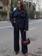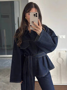 Juna | Ensemble Veste Ceinturée et Pantalon en Jean Foncé