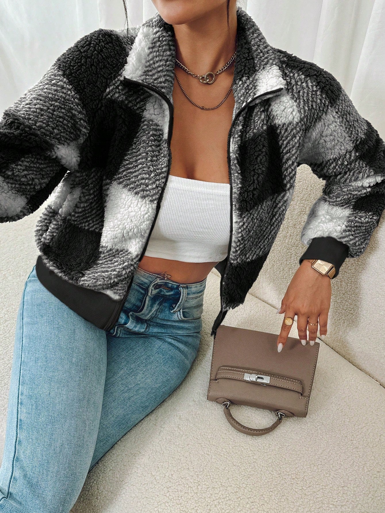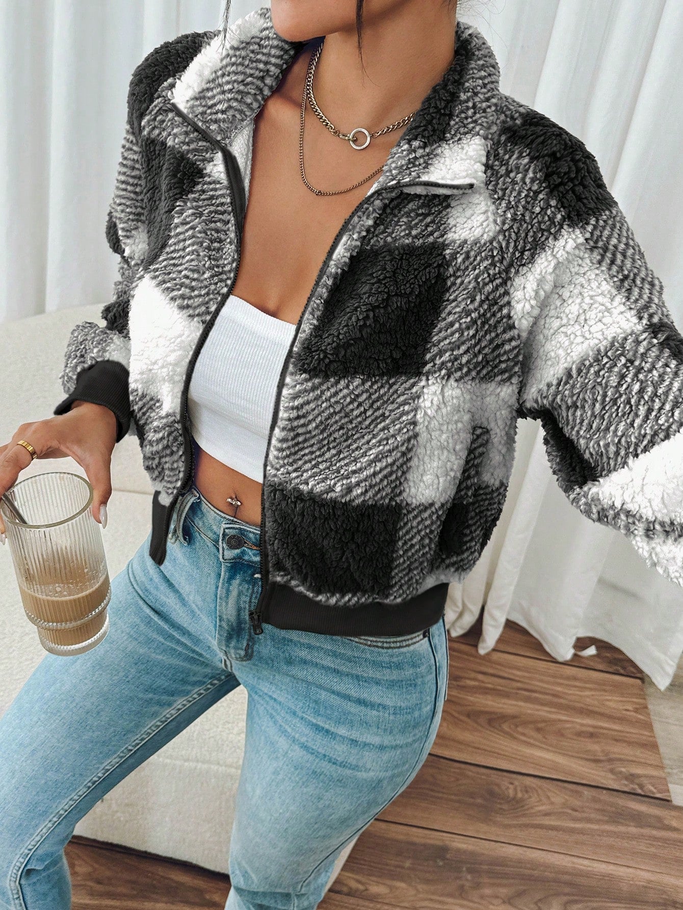 La veste Clara associe une coupe courte moderne à une matière polaire douce et confortable. Son imprimé à carreaux tendance en fait une pièce parfaite pour un look décontracté et urbain.