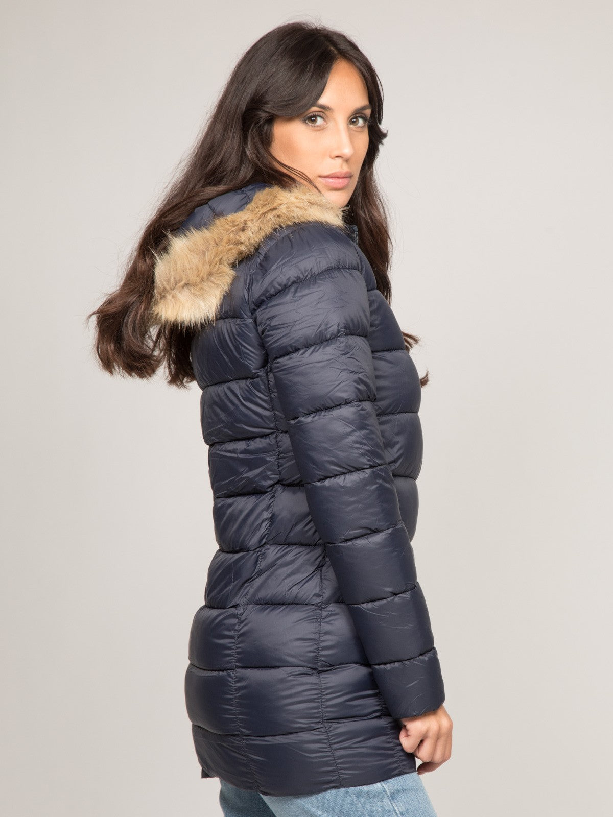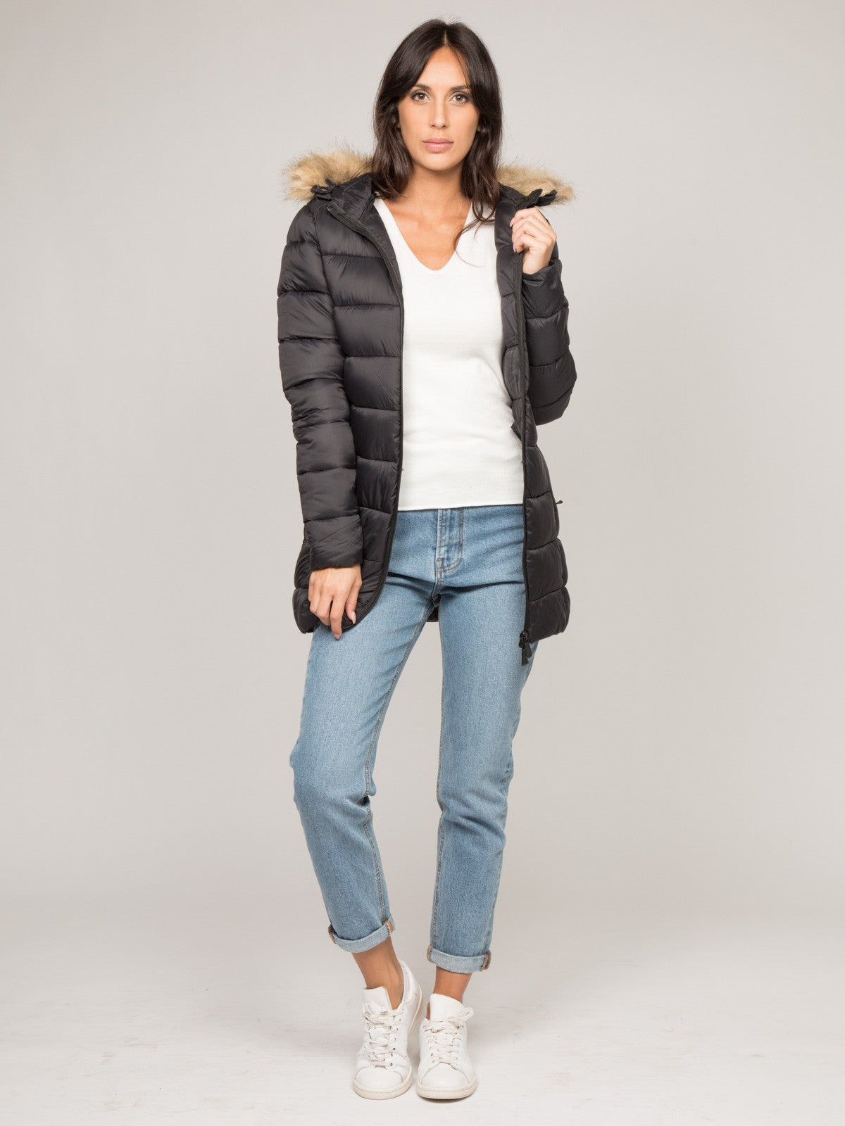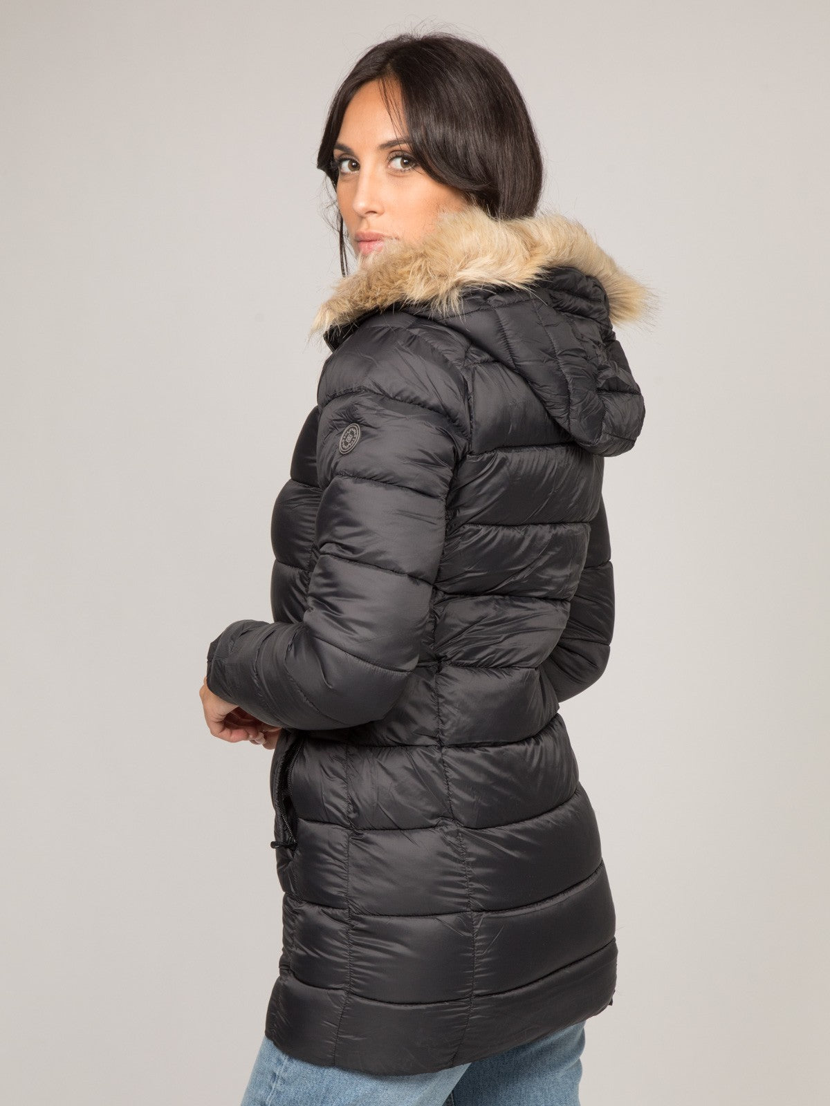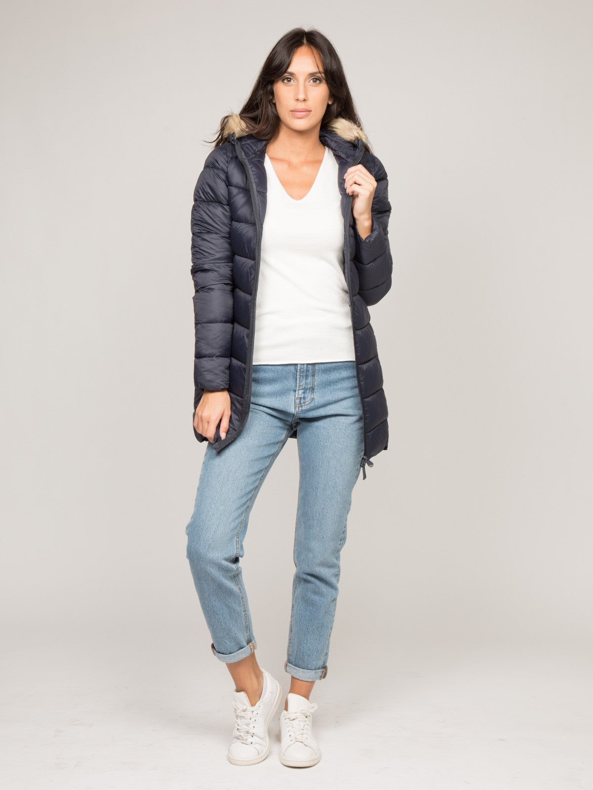 La doudoune Élya est pensée pour offrir une protection efficace contre le froid, tout en gardant un style épuré et actuel. Son rembourrage matelassé, sa capuche doublée de fausse fourrure et sa coupe longue en font une alliée parfaite pour la saison froide.