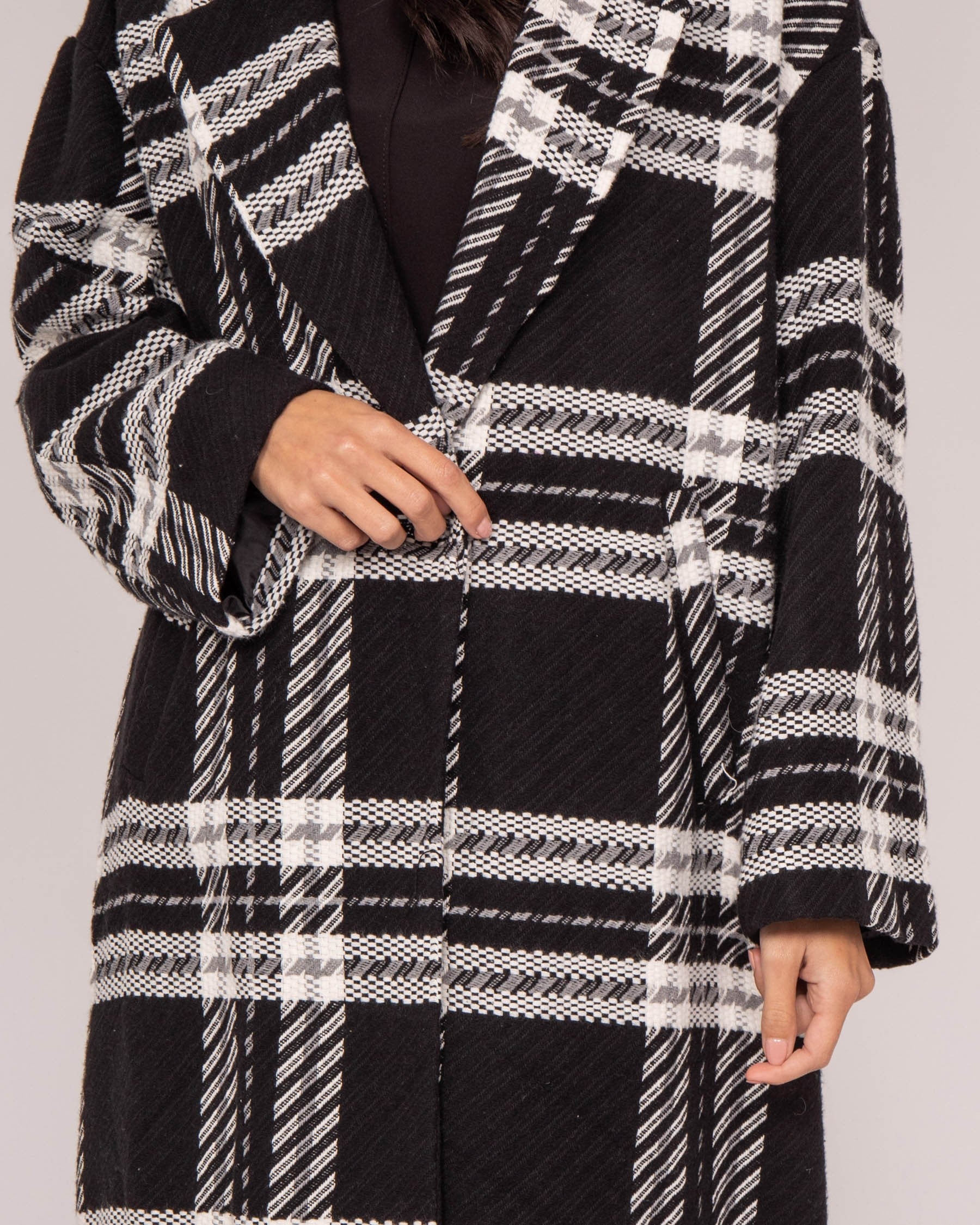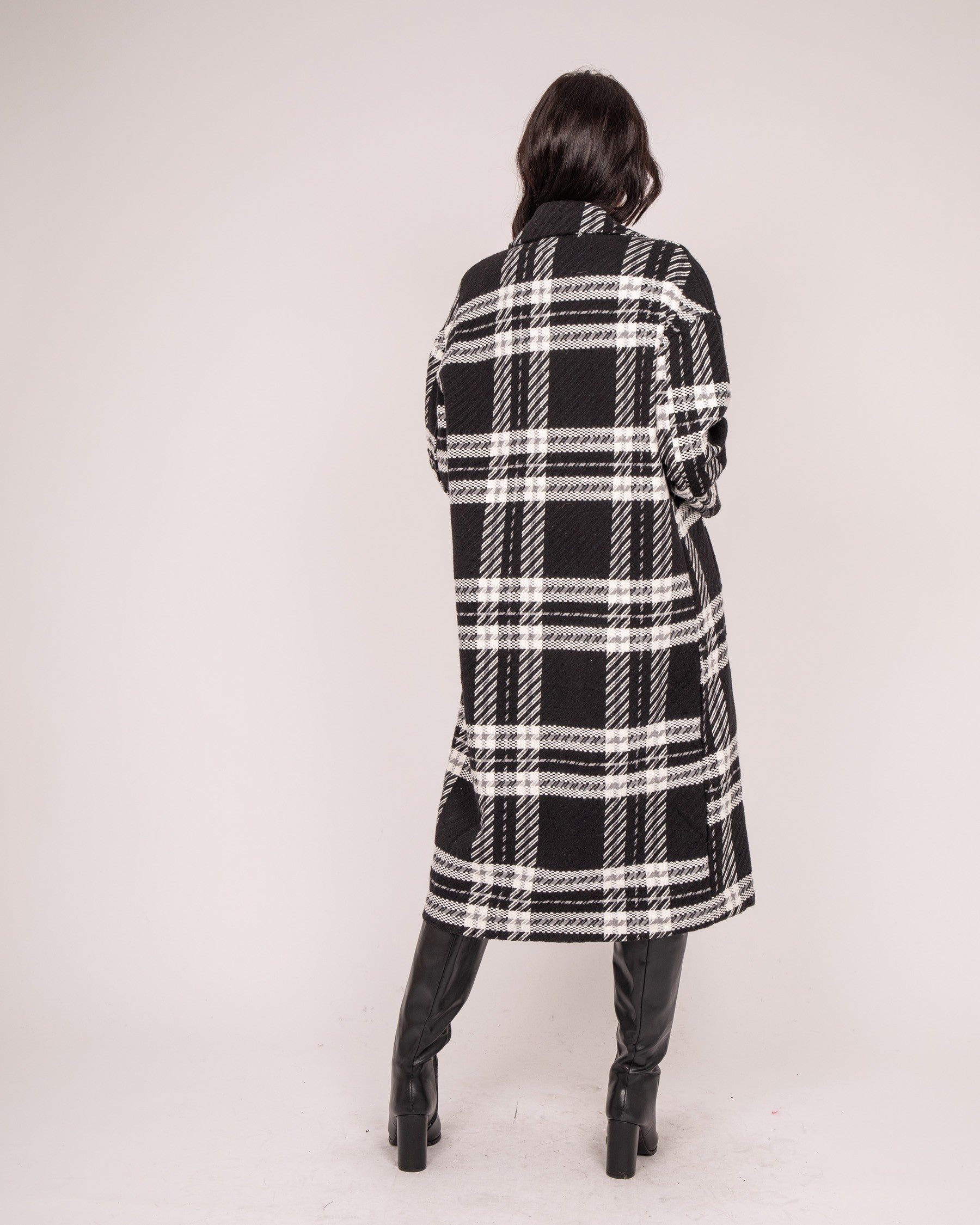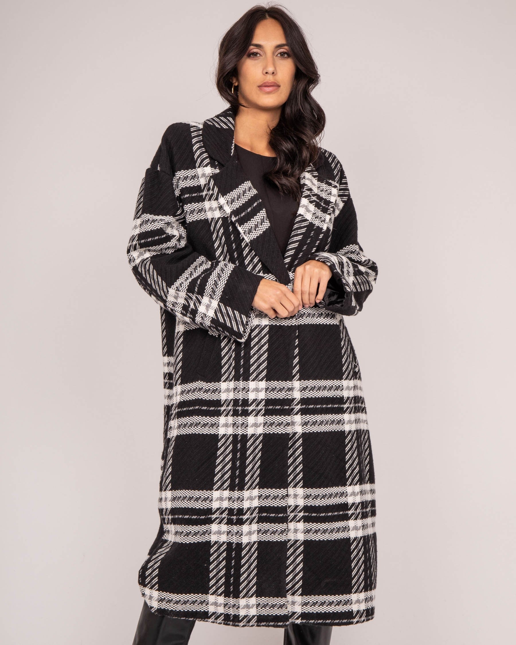 Céleste | Manteau Long Carreaux Noir & Blanc