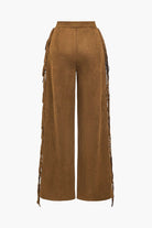 Le pantalon Mila associe une coupe ample et fluide à des détails à franges sur les côtés qui apportent du mouvement et du caractère. Un modèle original qui revisite le pantalon classique avec modernité.