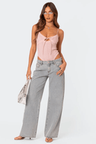 Naya | Jean Large Gris Délavé à Taille Basse