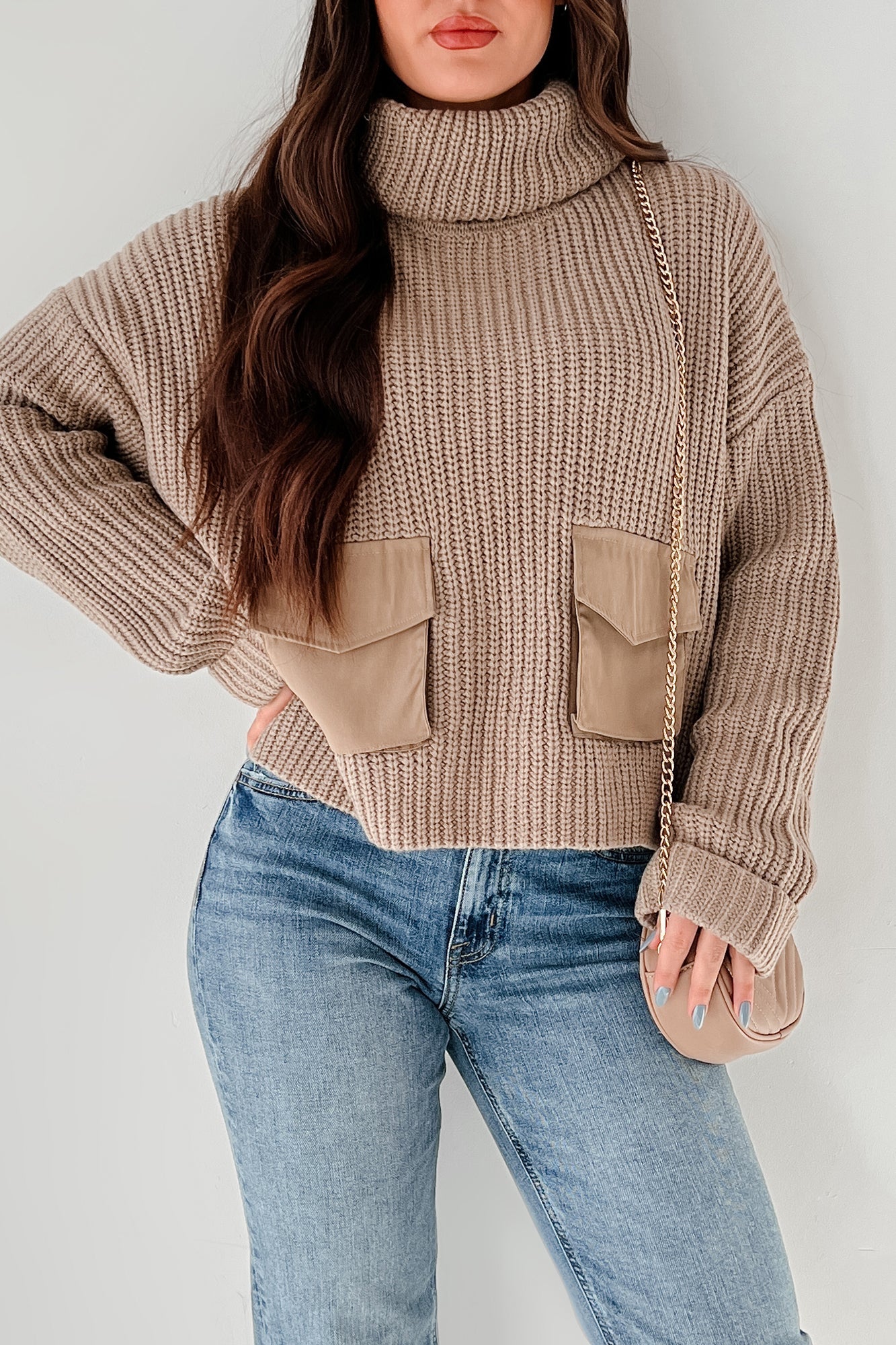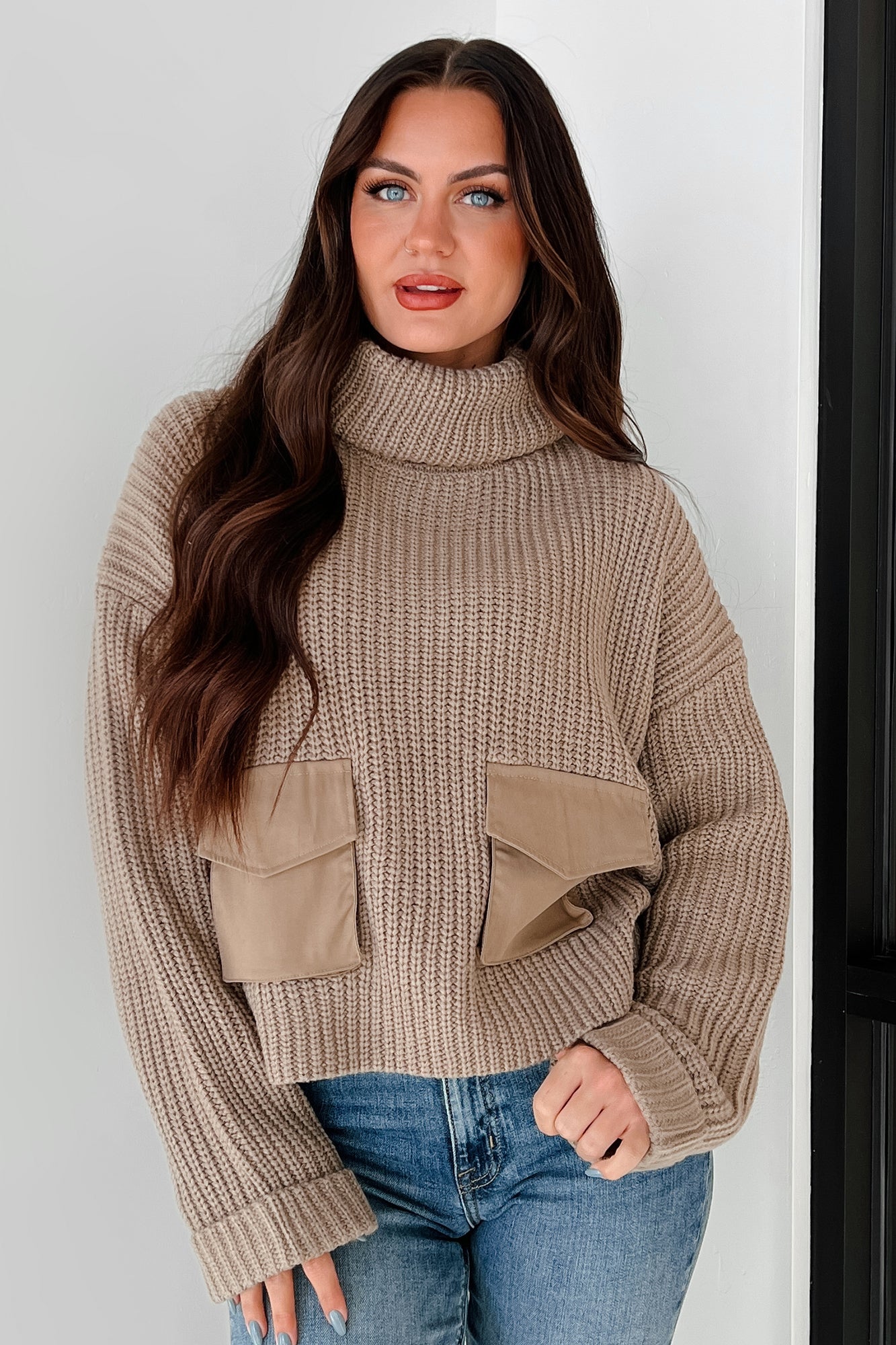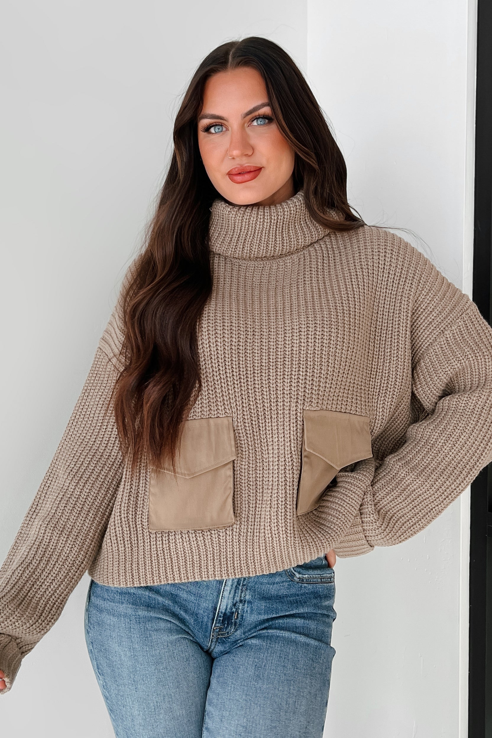 Ilana | Pull en Maille à Col Montant et Poches Contrastées