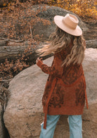 La veste Maëlle séduit par ses motifs floraux tissés et sa coupe longue idéale pour la saison froide. Conçue pour allier confort et caractère, elle se superpose facilement à vos tenues du quotidien, tout en apportant une touche de style affirmée.