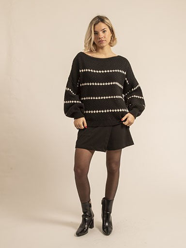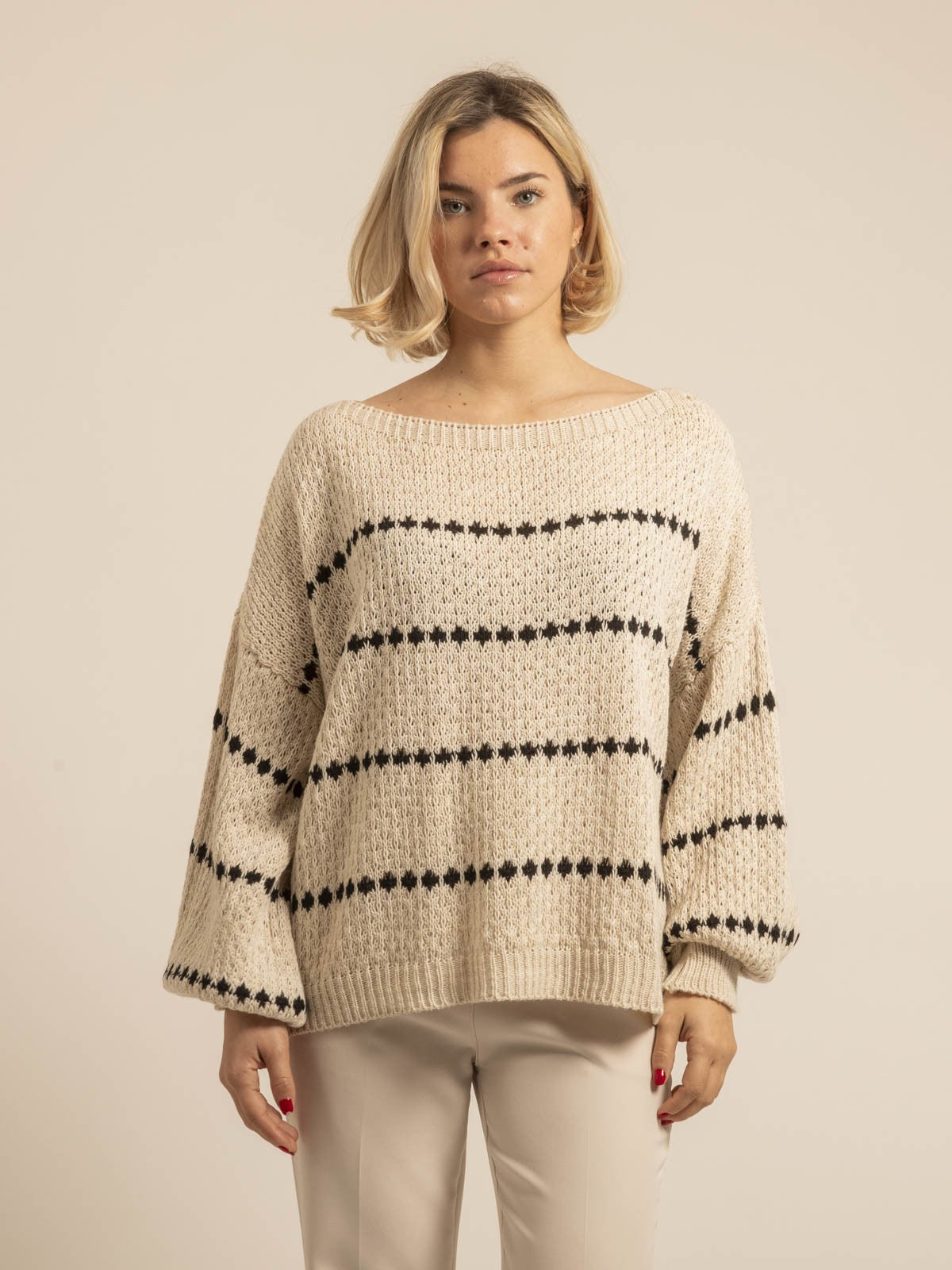 Le pull Maya associe confort et originalité avec sa maille moelleuse et ses rayures en relief. Parfait pour une tenue du quotidien, il apporte douceur et caractère sans effort.