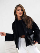 La veste Elina combine douceur et style avec sa matière molletonnée et sa coupe courte. Parfaite pour les journées fraîches, elle s'enfile facilement sur un pull ou un t-shirt pour un look confortable au quotidien.
