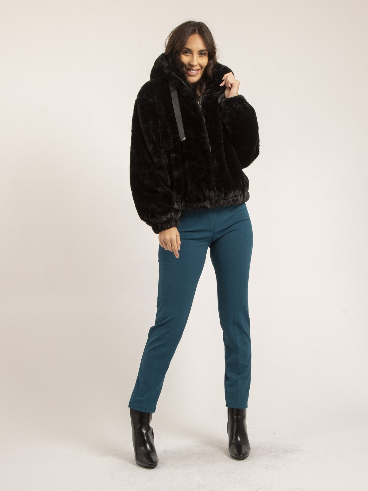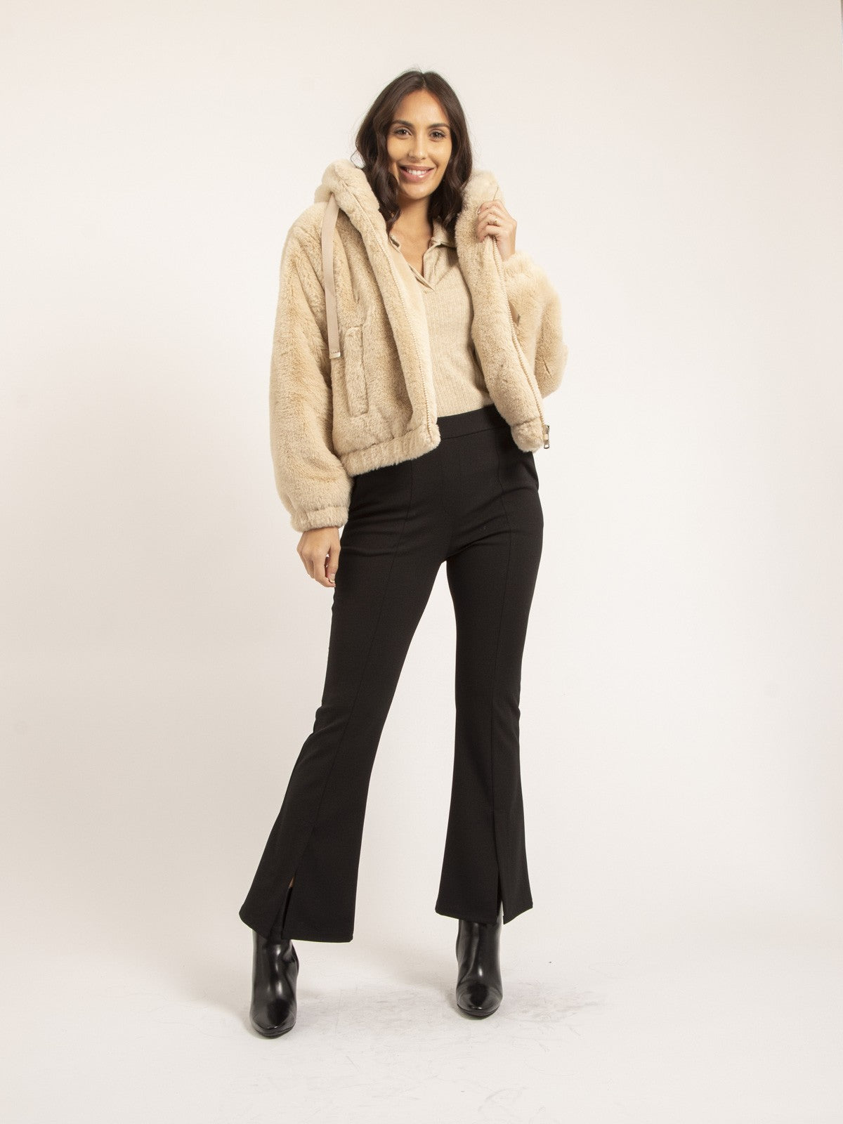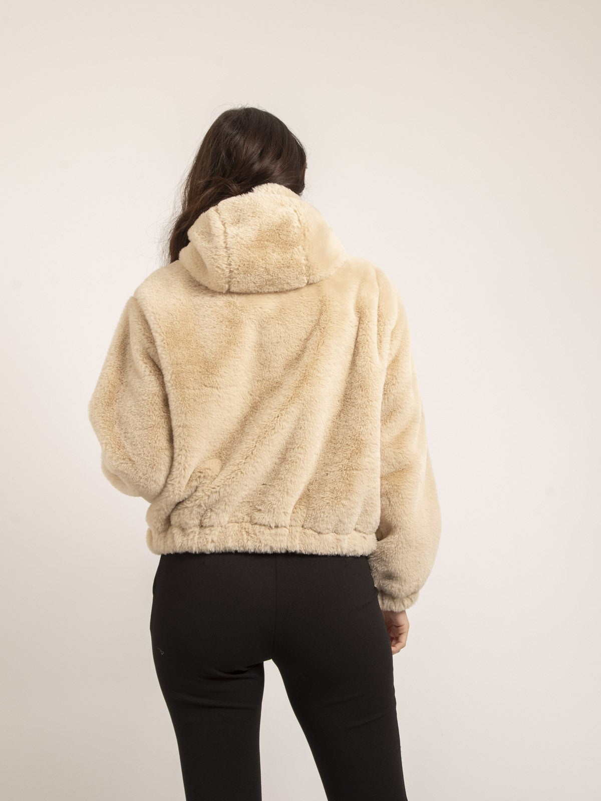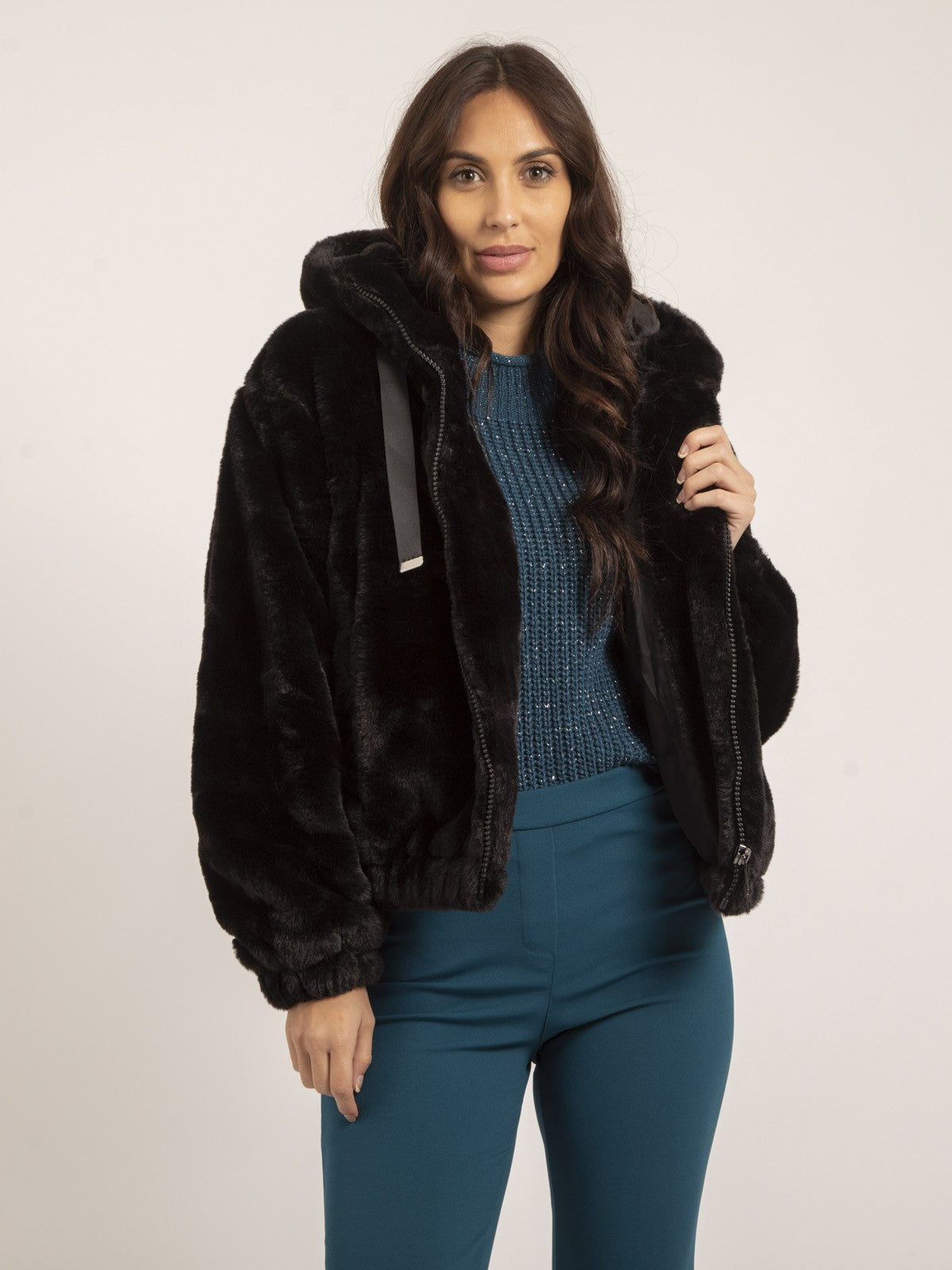 La veste Naya enveloppe en douceur grâce à sa fausse fourrure moelleuse et sa capuche confortable. Idéale pour une tenue cosy sans négliger le style, elle s’adapte facilement à vos looks décontractés.