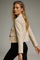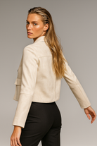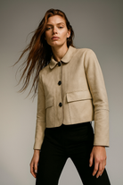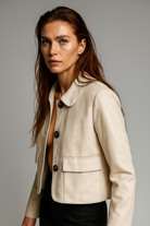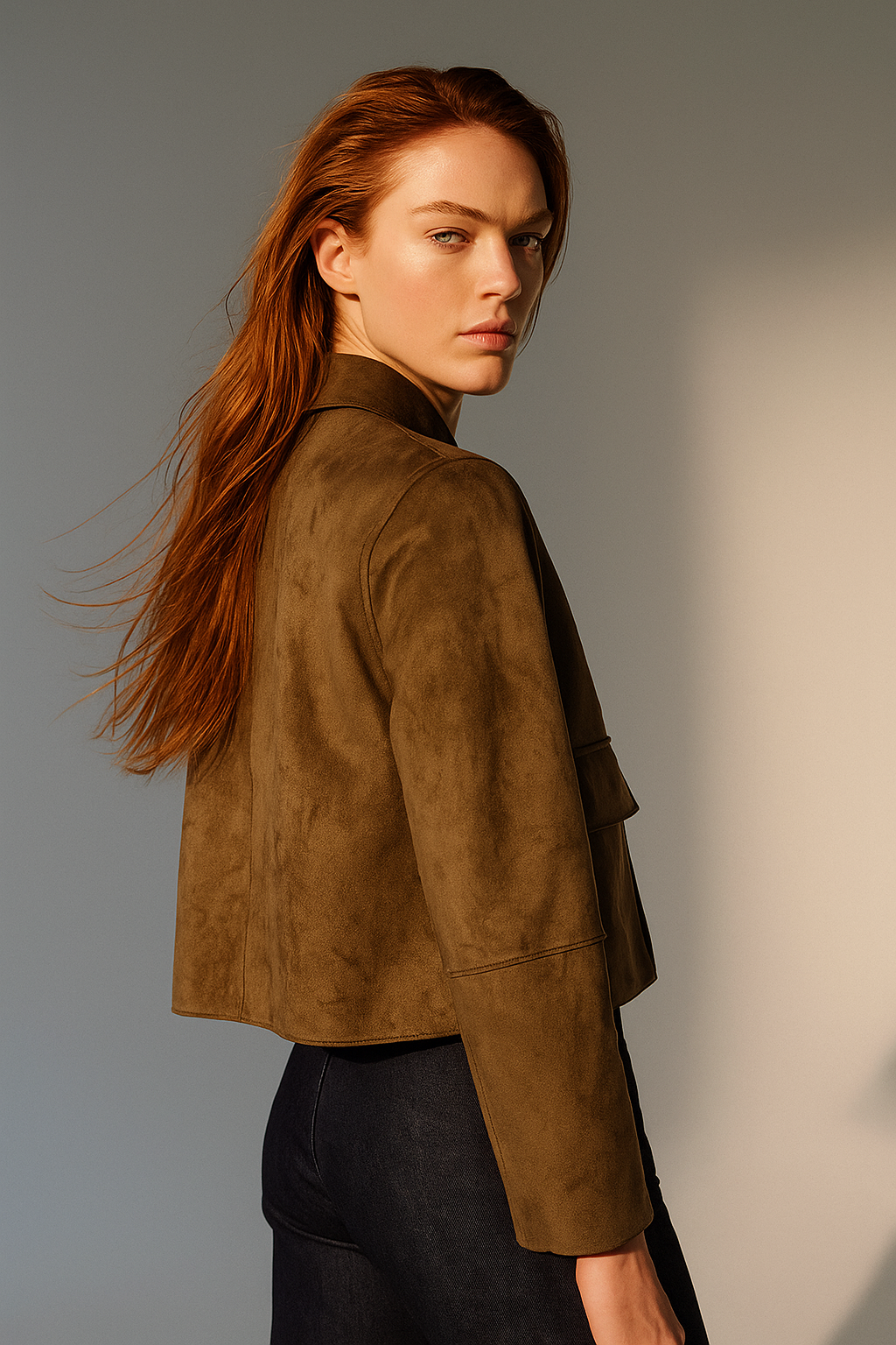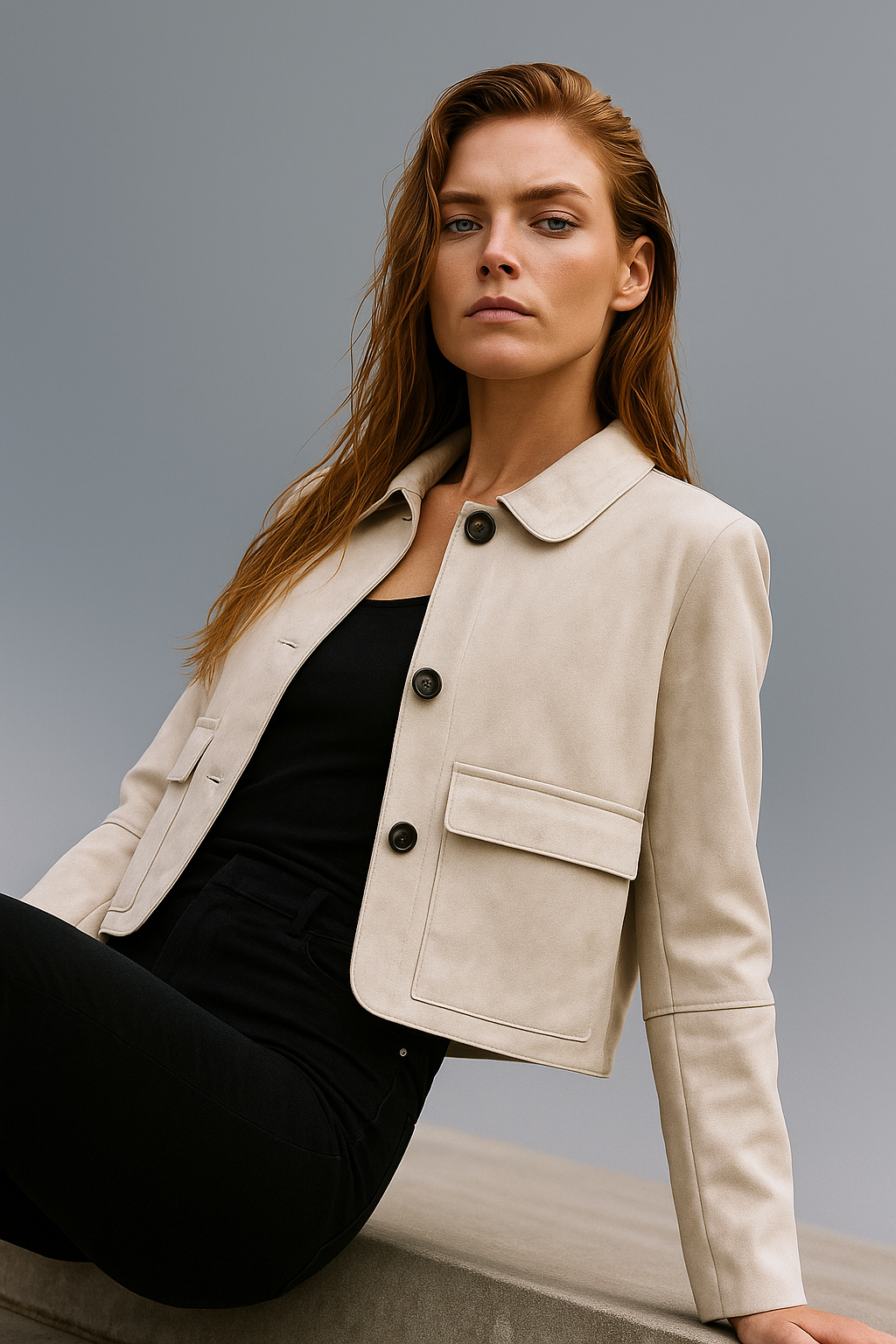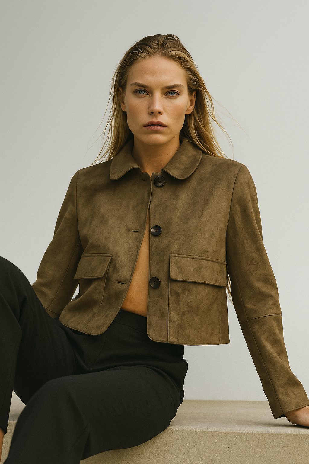 La veste Sara revisite le style utilitaire avec sa coupe courte, ses grandes poches plaquées et sa matière suédine douce au toucher. Facile à assortir, elle s’adapte à toutes les occasions avec élégance.